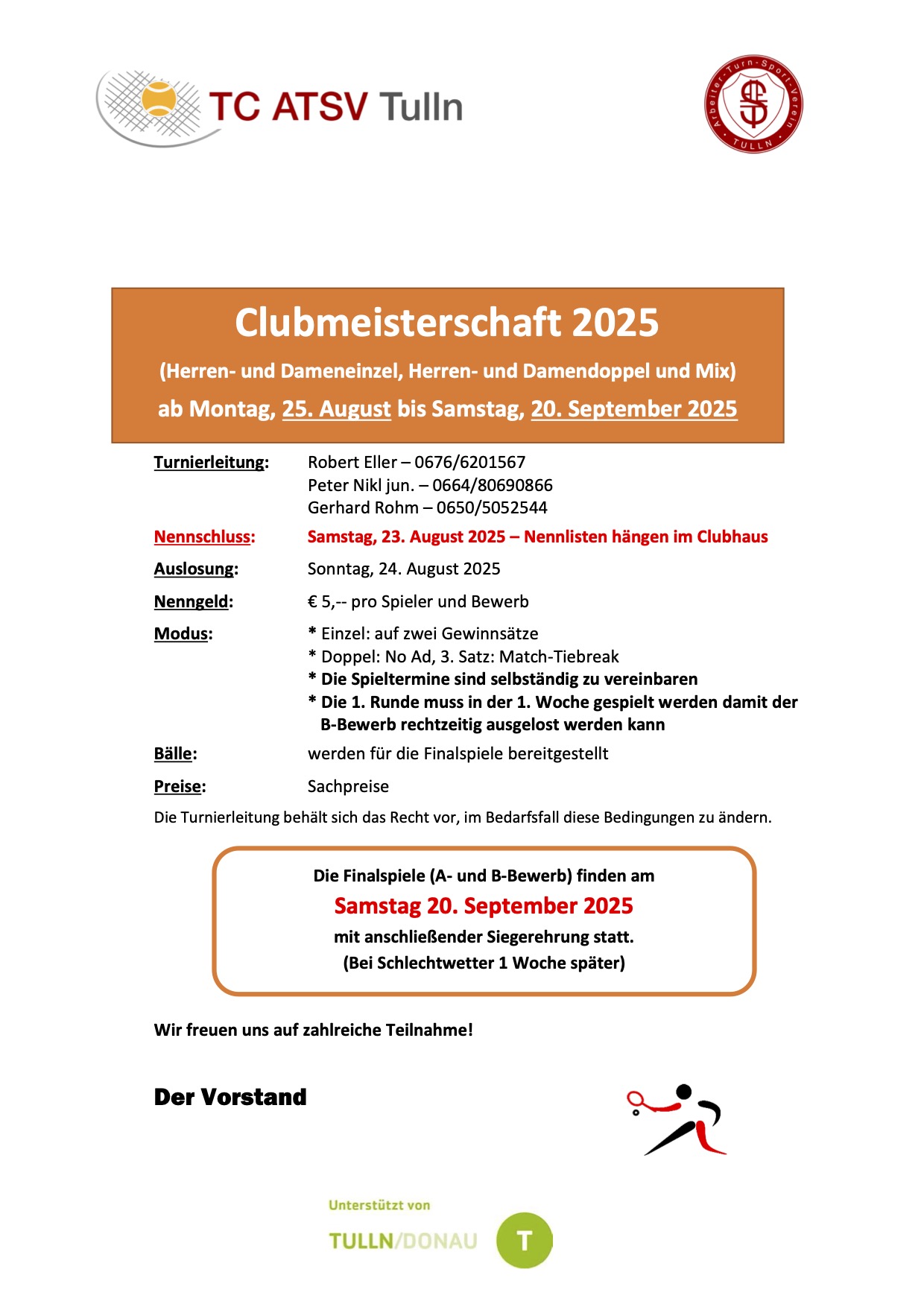 Alle (bekanntgegebene) Termine findet ihr unter Termine > Clubmeisterschaft 2025.
